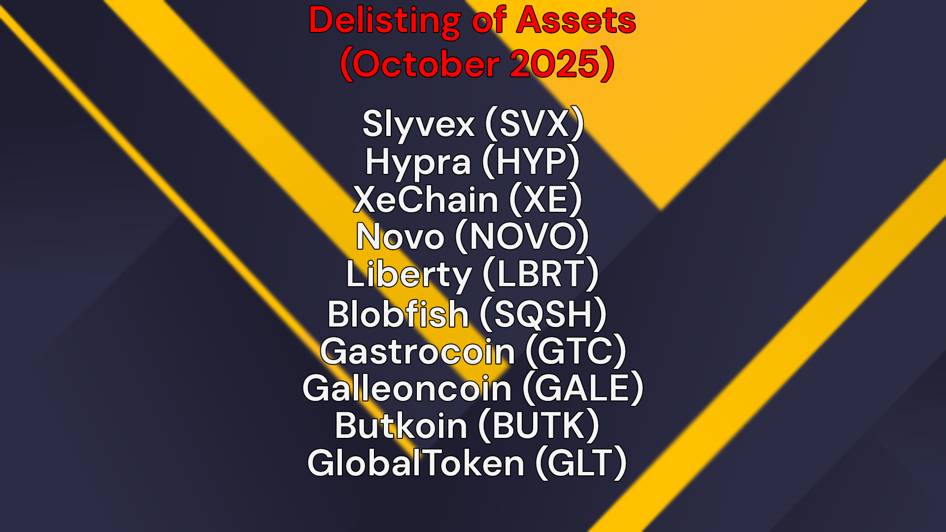As part of our ongoing efforts to maintain a high-quality trading environment and comply with updated listing standards, we will be delisting the following assets from our exchange this month: